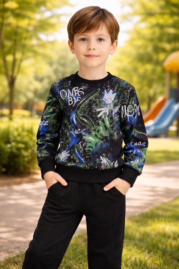 Erkek Çocuk Yazı Baskılı Siyah Renk Eşofman Takım