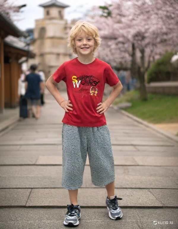 Erkek Çocuk Yazlık Pijama Takımı | Kırmızı Tişört & Gri Kapri | 7 – 12 Yaş