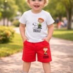 Erkek çocuklar için tasarlanmış yazlık takım, beyaz tişört ve kırmızı şort içerir. Hafif ve nefes alabilir kumaşıyla günlük hareketlerde rahatlık sağlar. Renk uyumu ve şık tasarımıyla çocukların stilini tamamlar. Beden seçenekleriyle uygun uyum ve hareket özgürlüğü sunar. Kolay bakım ve dayanıklı yapısı ile uzun süre kullanılabilir. Yaz aylarında serin ve rahat kalmasını sağlar. Günlük aktivitelerde ve dış mekan kullanımlarında ideal seçimdir.