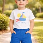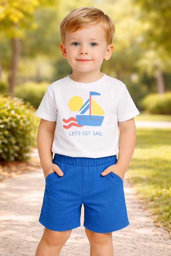 Erkek Çocuk Yelkenli Baskılı – Kısakollu Tişörtlü – Şortlu Takım