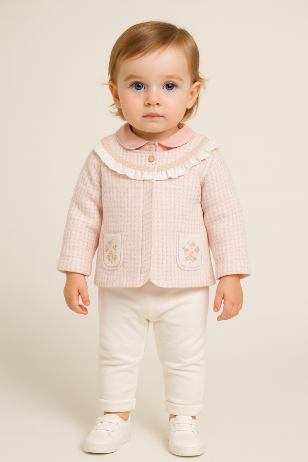 Küçük prenseslerin zarafetine zarafet katacak bu 3'lü kız çocuk takım, klasik tüvit dokusunu modern ve romantik detaylarla birleştiriyor. Hem özel günlerde hem de şık günlük gezmelerde tercih edebileceğiniz bu kombin, yumuşak renk tonları ve kaliteli işçiliğiyle ön plana çıkıyor.