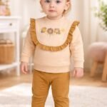 Kız Bebek Çiçek Nakışlı Bisiklet Yakalı Ön Kısmı Fırfır Detaylı 2li Takım nasıl bir kumaştan üretilmiştir?