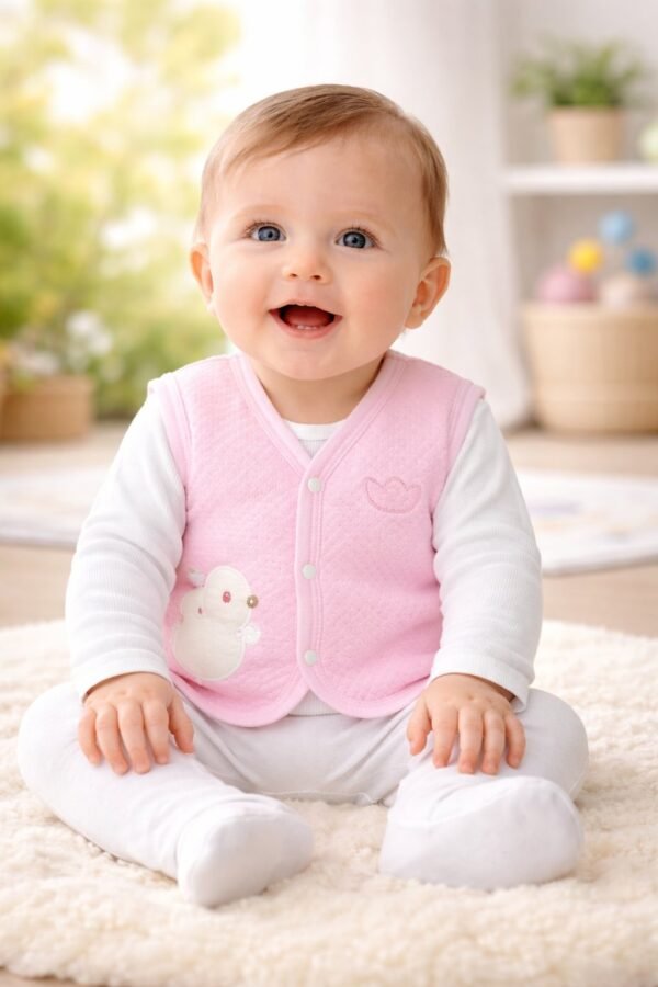 Kız Bebek Civciv Nakışlı Çıtçıt Kapamalı Kapitone Yelek