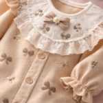 Kız Bebek Dantelli Uzun Kollu Tulum Kahverengi Desenli 3-12 Ay nasıl bir kumaştan üretilmiştir?