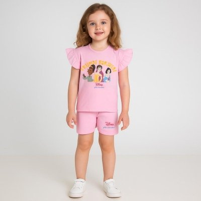 Kız Bebek Friends Forever Yazılı Prenses Baskılı Pembe Renk Kısa Kollu Şortlu Takım