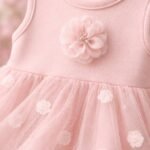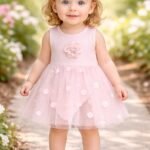 Kız Bebek Gül Işlemeli Sıkır Kollu Çıtçıtlı Pembe Renk Tüllü Elbise nasıl bir kumaştan üretilmiştir?