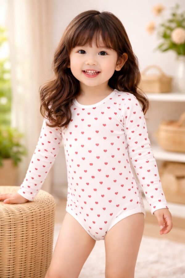 Kız bebek kalpli uzun kollu pamuklu çıtçıtlı bady