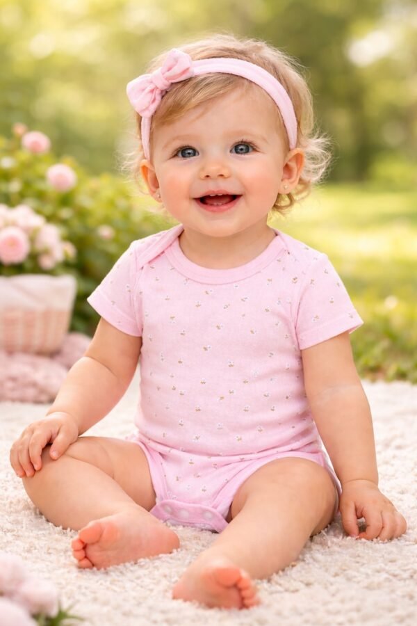 Kız Bebek Pembe Çiçek Desenli Kısa Kollu Zıbın Body