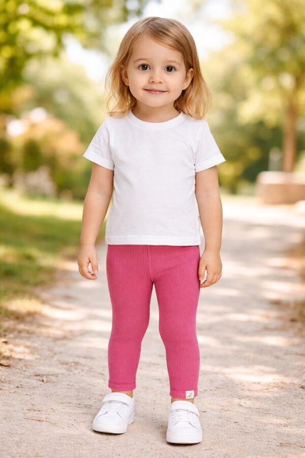 Kız Bebek Likralı Tek Alt Tayt Fuşya Renk Bel Lastikli Esnek 4-24 Ay