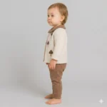 Rahat Kesim Pantolon: Kahverengi tonlarındaki pantolon, paça kısımlarındaki ribana detayları sayesinde bebeğinizin hareket özgürlüğünü kısıtlamadan gün boyu konfor sunar.