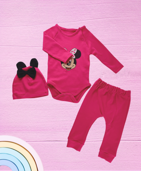 Bebek kızlar için tasarlanmış, şık ve kullanışlı pembe takım. 3-18 ay arası bebekler için uygun, yumuşak ve dayanıklı yapıya sahiptir. Günlük kullanıma uygun, hareket özgürlüğü sağlar. Beden seçenekleriyle farklı yaş gruplarına hitap eder. Ürünün içeriğinde body, pantolon ve bere bulunur. Bebeklerin hassas ciltleri düşünülerek tasarlanmış olup, kolay giydirme ve çıkarmaya imkan tanır. Bakımında nazik yıkama tercih edilmelidir.