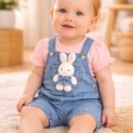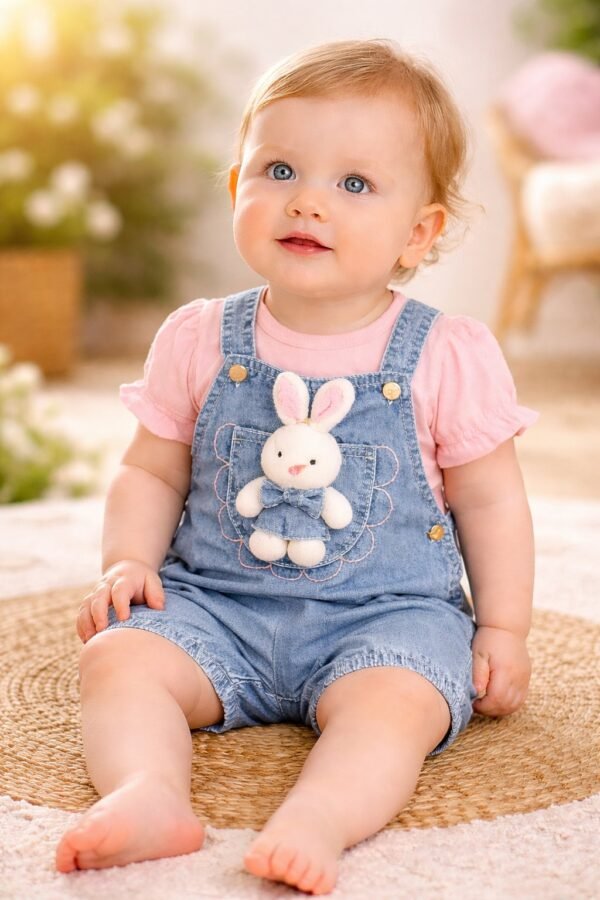 Kız Bebek Tavşan Detaylı Kısa Kol Tişörtlü Kot Bahçıvan