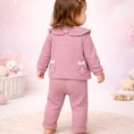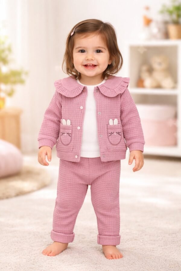 Kız Bebek Waflle Kumaşlı Fırfır Yakalı Zıbınlı 3’lü Takım