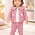 Bebek kızlar için tasarlanmış bu pamuklu waflle kumaşlı 3'lü takım, yumuşak ve kullanışlı yapısıyla bebek giyiminde tercih edilir. Fırfır yakası ve çıtçıt detaylarıyla pratik kullanım sağlar. Günlük ve özel günler için uygun olan bu takım, hareket kabiliyetini kısıtlamadan rahatlık sunar.