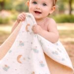 Erkek Bebek Yıldız Ve Ay Baskılı Çift Taraflı Pikeli Müslin Battaniye