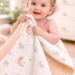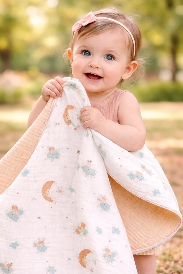 Kız Bebek Yıldız Ve Ay Baskılı Çift Taraflı Pikeli Müslin Battaniye