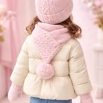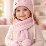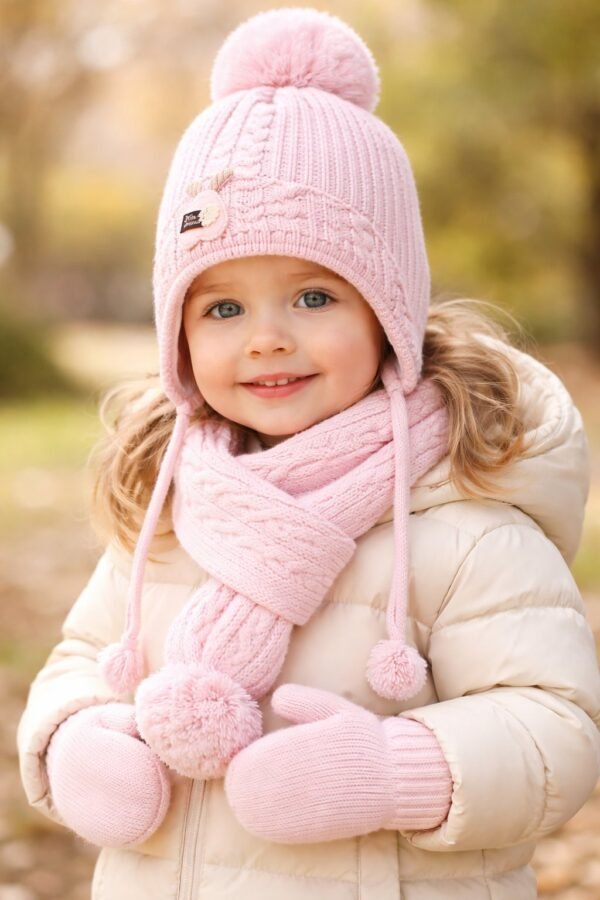 Kız Bebek Yünlü Atkı – Bere – Eldiven Seti Pembe Renk
