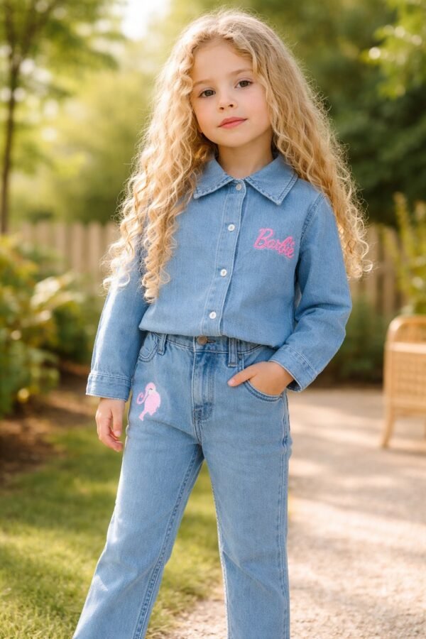 Kız Çocuk Barbie Nakışlı – Kot Takım
