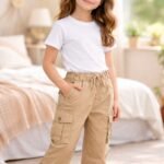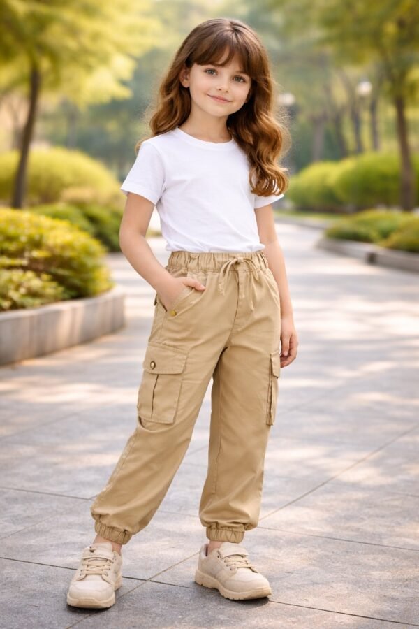 Kız Çocuk Bel Kısmı Lastiklki Bağcıklı Kargo Cepli Bilek Kısmı Lastikli Pantolon
