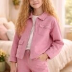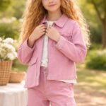 Kız Çocuk – Cep Detaylı – Keten Ceket -tişört – Kargo Cepli Kot Pantolonlu Takım