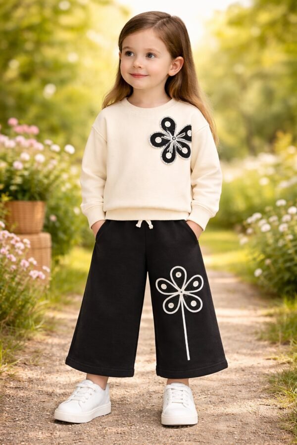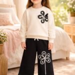 Kız Çocuk Çiçek İşlemeli Uzun Kollu 2ip Takım