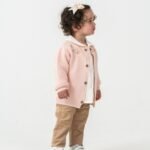 Kız Çocuk çiçek nakışlı- düğmeli -triko kırka-müslin gömlekli -pantolon takım
