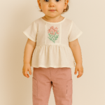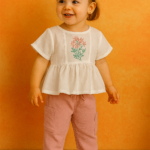 Kız Çocuk Çiçek Nakışlı Müslin Kumaşlı Gömlek – Uzun Bol Paça Pantolunlu Takım