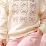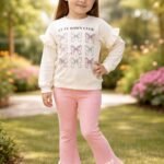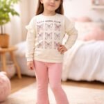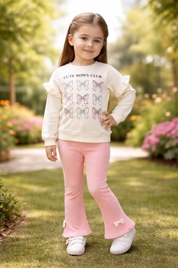 Kız Çocuk Fiyonk Baskılı -uzun Kollu – Fitilli Taytlı Takım