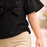 Kız Çocuk Fiyonk Detaylı Siyah Renk Kısa Kollu Tişörtlü Taytlı Takım