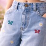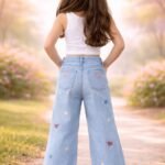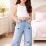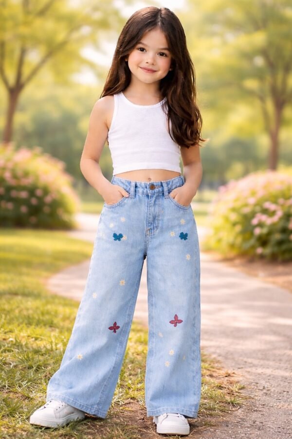 Kız Çocuk Fiyonk Işlemeli Garson Boy Bol Paçalı Kot Pantolon