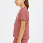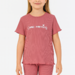 Kız Çocuk Good Morninig Yazılı Fitilli Kısa Kollu Pamuklu Pudra Renk Şort Takım