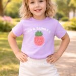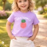 Kız çocuk hola summer yazılı ananas baskılı mor renk tişört -3-4-5-6 -7 yaş