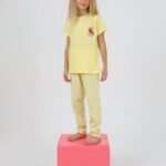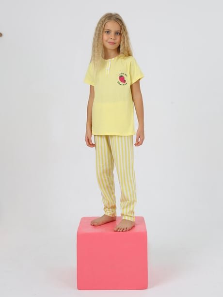 Kız çocuk ı love you berry much yazılı çilek baskılı sarı renk pijama takımı
