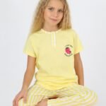 Kız Çocuk I Love You Berry Much Yazılı Çilek Baskılı Sarı Renk Pijama Takımı