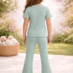 Kız Çocuk Kalp Baskılı Fitilli Su Yeşili Renkli Şortlu Kısakollu Takım nasıl bir kumaştan üretilmiştir?