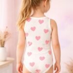 Kız Çocuk Kalp Baskılı Sıfır Kollu Pamuklu Çıtçıtlı Bady