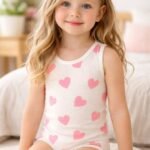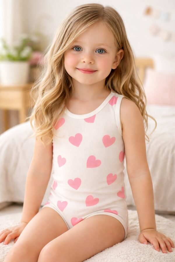 Kız çocuk kalp baskılı sıfır kollu pamuklu çıtçıtlı bady