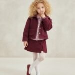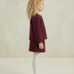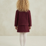 Kız Çocuk kaşe ceketli -ekose gömlekli- kot etekli bordo renk takım