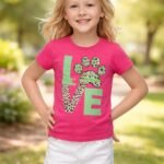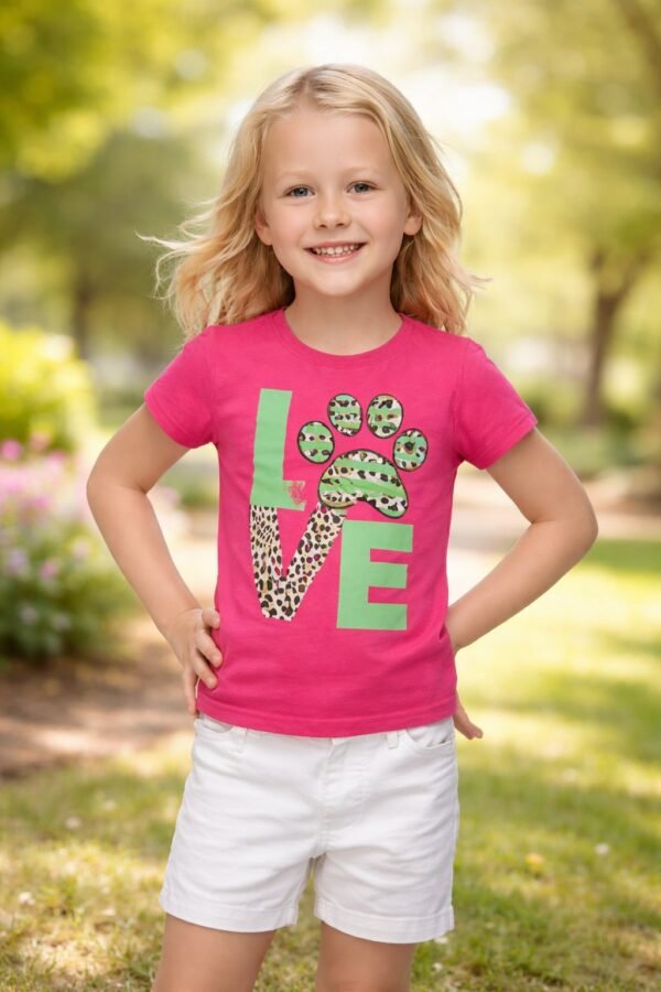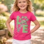 Kız Çocuk Love Desenli T – Shirt – Renk Seçenekleri Mor, Pembe, Mavi – Pamuk Malzeme – Günlük Kullanım – Sevimli Detaylar
