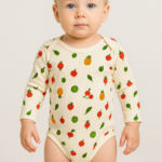 Bebeklerin hassas cildi için özel olarak tasarlanan bu meyve desenli body, hem sevimli görünümü hem de fonksiyonel yapısıyla öne çıkıyor. Esnek ribana kumaşı sayesinde miniklerin hareket özgürlüğünü kısıtlamazken, doğal dokusuyla gün boyu konfor sağlar.