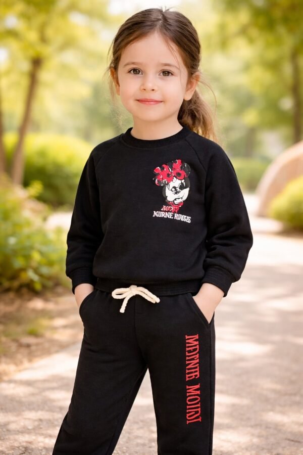 Küçük prenseslerin hem şıklığını hem de konforunu düşünen bu Minnie Mouse temalı takım, günlük kullanım için mükemmel bir tercihtir. Yumuşak dokulu sweatshirt ve rahat kesim eşofman altından oluşan bu set, çocukların hareket özgürlüğünü kısıtlamadan gün boyu keyifle vakit geçirmelerini sağlar.