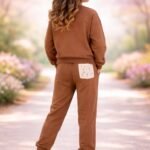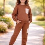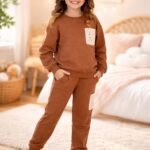 Kız Çocuk Örme Cepli Kahve Renk 2ip Eşofman Takım