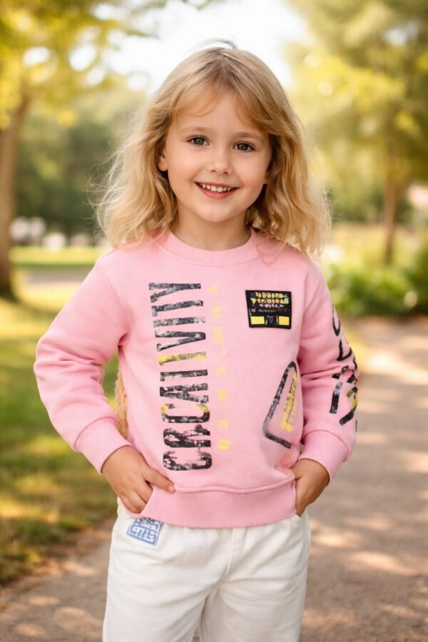 Kız Çocuk Sweatshirt | 3 Yaş | Pudra | Uzun Kol