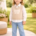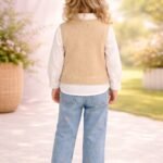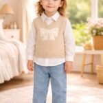 Parça Sayısı: 3 Parça (Triko Süveter, Puantiyeli Gömlek, Nakışlı Jean Pantolon).