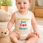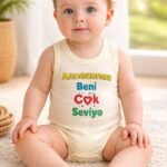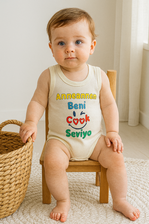 Ünisex Anneannem Beni Çok Seviyor Yazılı Sıfır Kollu Çıtçıtlı Bady