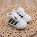 Bebeğinizin ilk adımları artık çok daha güvenli ve stil sahibi! Unisex bebek ilk adım ayakkabısı, minik ayakların doğal yapısına uyum sağlayacak şekilde esnek ve hafif materyallerden üretilmiştir. İkonik 3 çizgili tasarımı ve canlı renk seçenekleri (mavi, pembe, siyah) ile her kombine modern bir dokunuş katar.