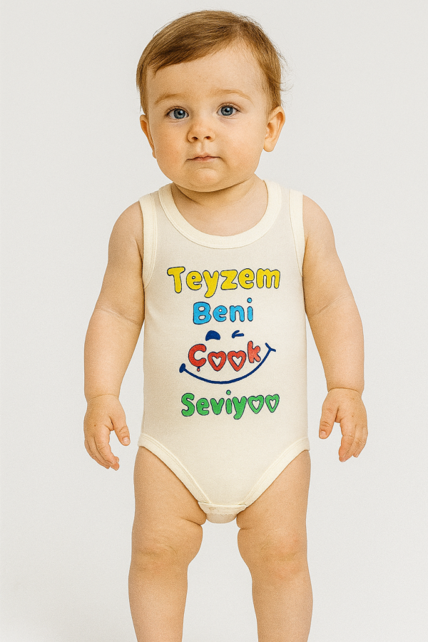 Ünisex Teyzem Beni Çok Seviyor Yazılı Sıfır Kollu Çıtçıtlı Bady