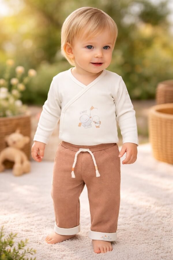 Unisex waffle kumaş pantolon, bel kısmı lastikli ve bağcık detayına sahip uzun paçalı tasarımıyla çocukların hareket kabiliyetini kısıtlamadan rahatlık sağlar. Gül kurusu renginde, 12-24 ay arasındaki bebekler için uygun olan bu pantolon, günlük kullanıma uygun dayanıklı malzemeden üretilmiştir. Esnek yapısı ve pratik kullanımıyla ebeveynlerin tercihidir. Çocukların şıklığını ve konforunu tamamlayan bu ürün, kolay giyilip çıkarılabilir yapısıyla öne çıkar. Günlük aktiviteler ve dış mekân kullanımı için ideal, çocukların hareketlerini sınırlamadan şık görünmelerini sağlar.