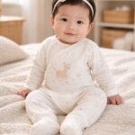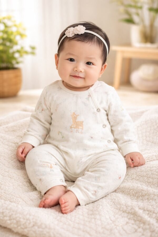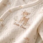 Unisex Yandan Çıtçıtlı Little Dear Yazılı Yavru Geyik Baskılı Uzun Kollu Organik Pamuklu Ayaklı Tulum nasıl bir kumaştan üretilmiştir?